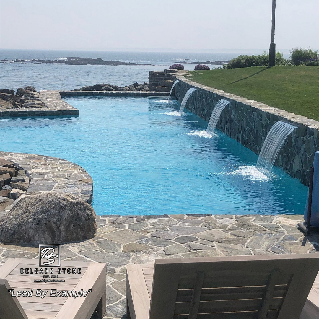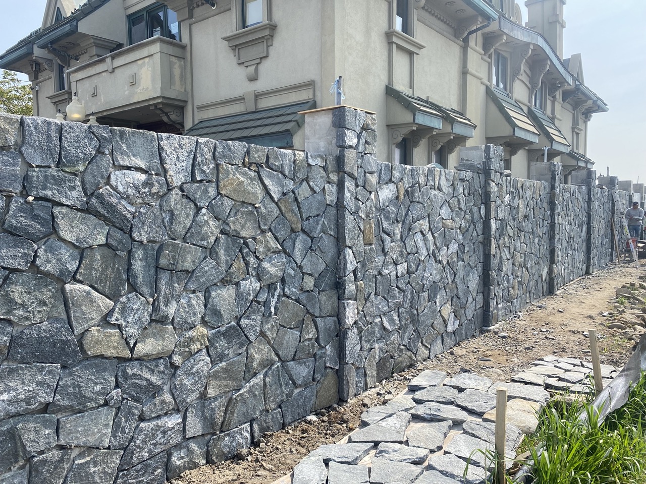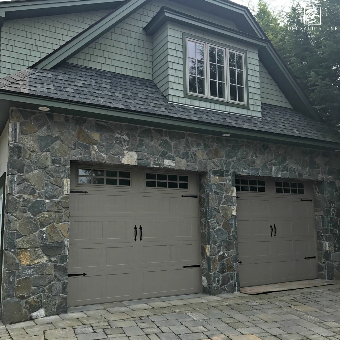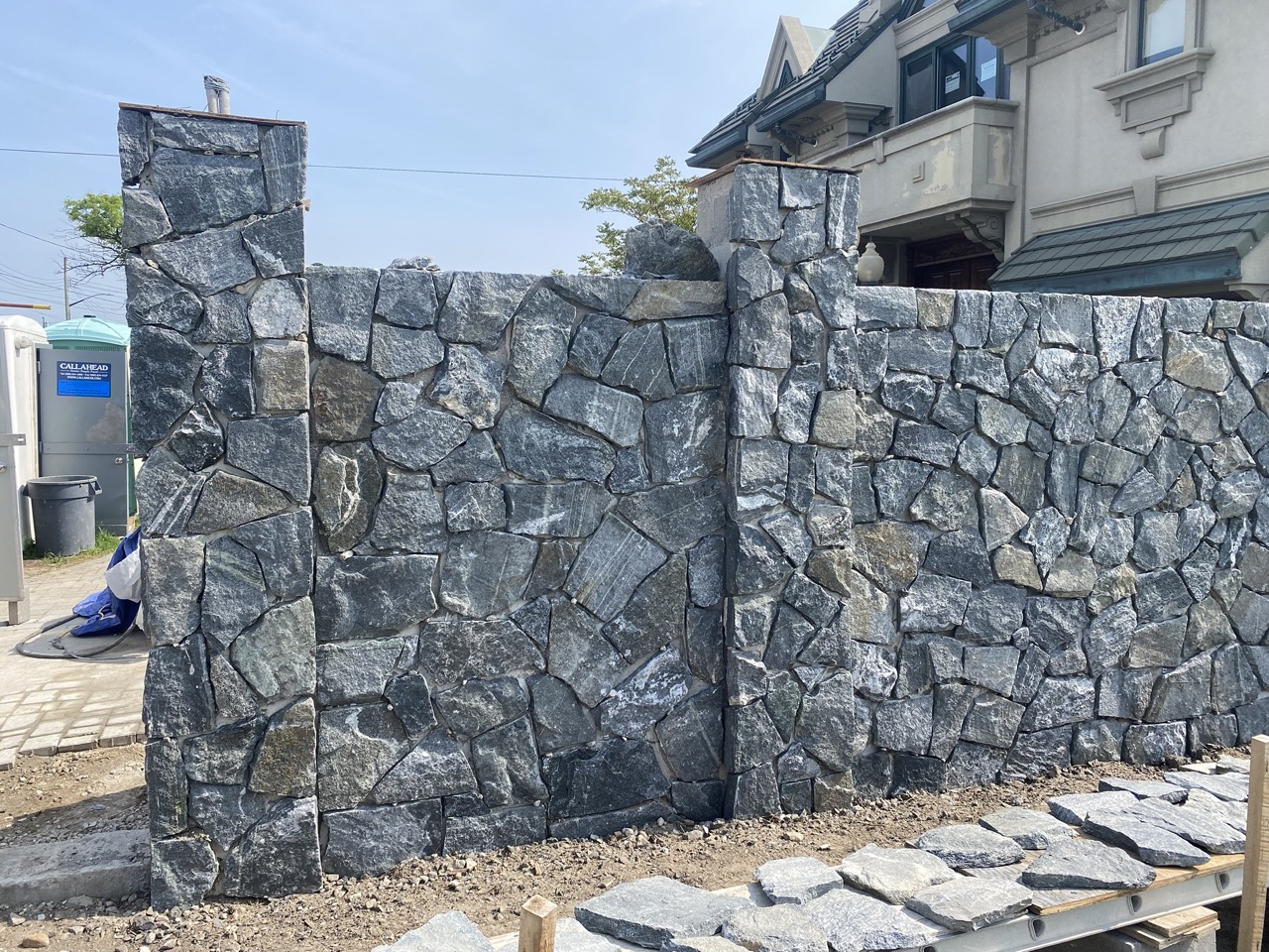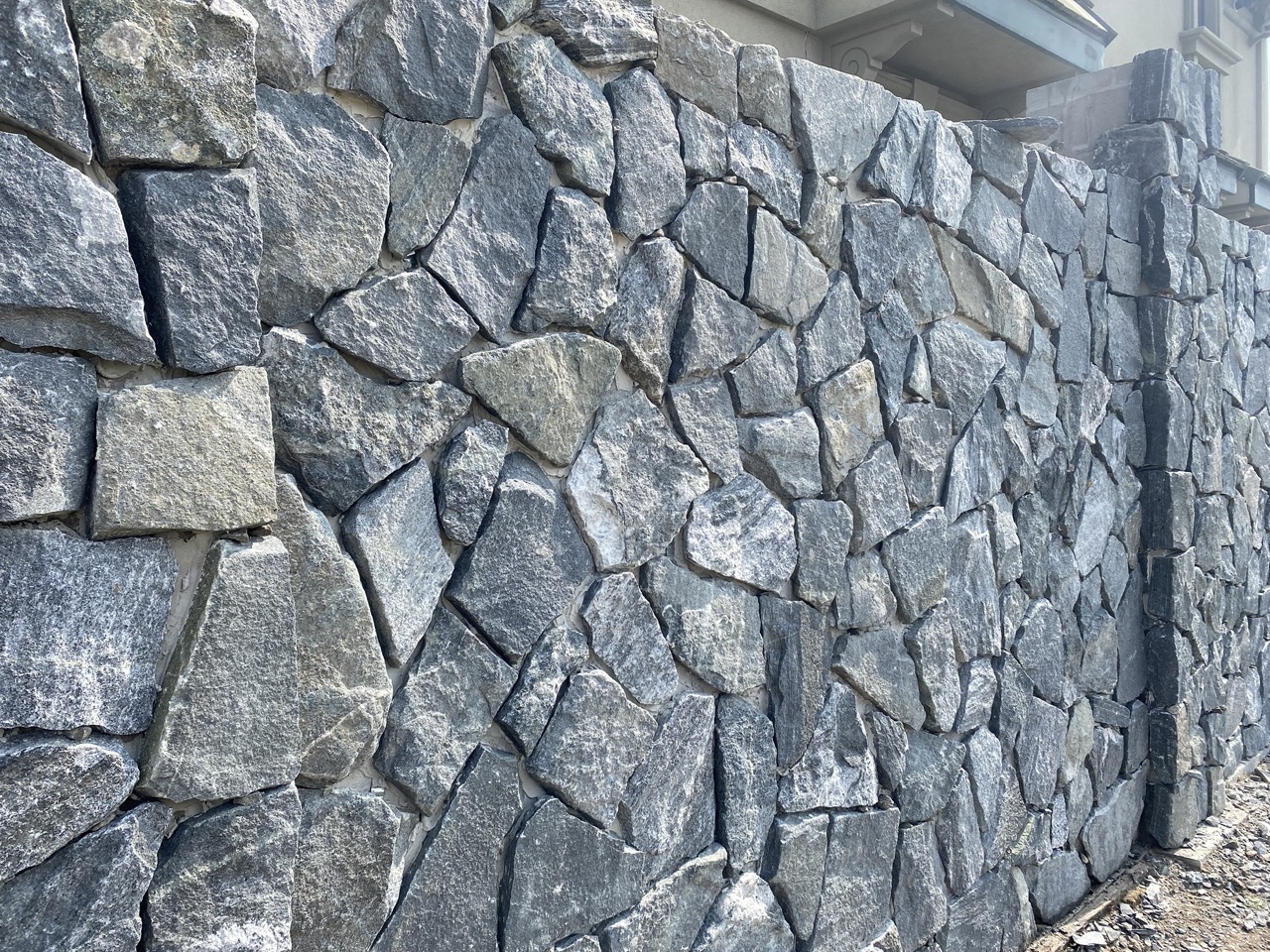 Delgado Stone American Mist Mosaic veneer features a bold dark grey base complemented by subtle touches of white, tan, and green, offering a rich visual texture for masonry designs. The irregular mosaic pattern brings organic movement and depth, making it a versatile choice for everything from modern architecture to old-world-inspired builds across Long Island. Crafted from natural stone, American Mist delivers timeless appeal and adaptability for interior and exterior walls, fireplaces, and landscape elements.