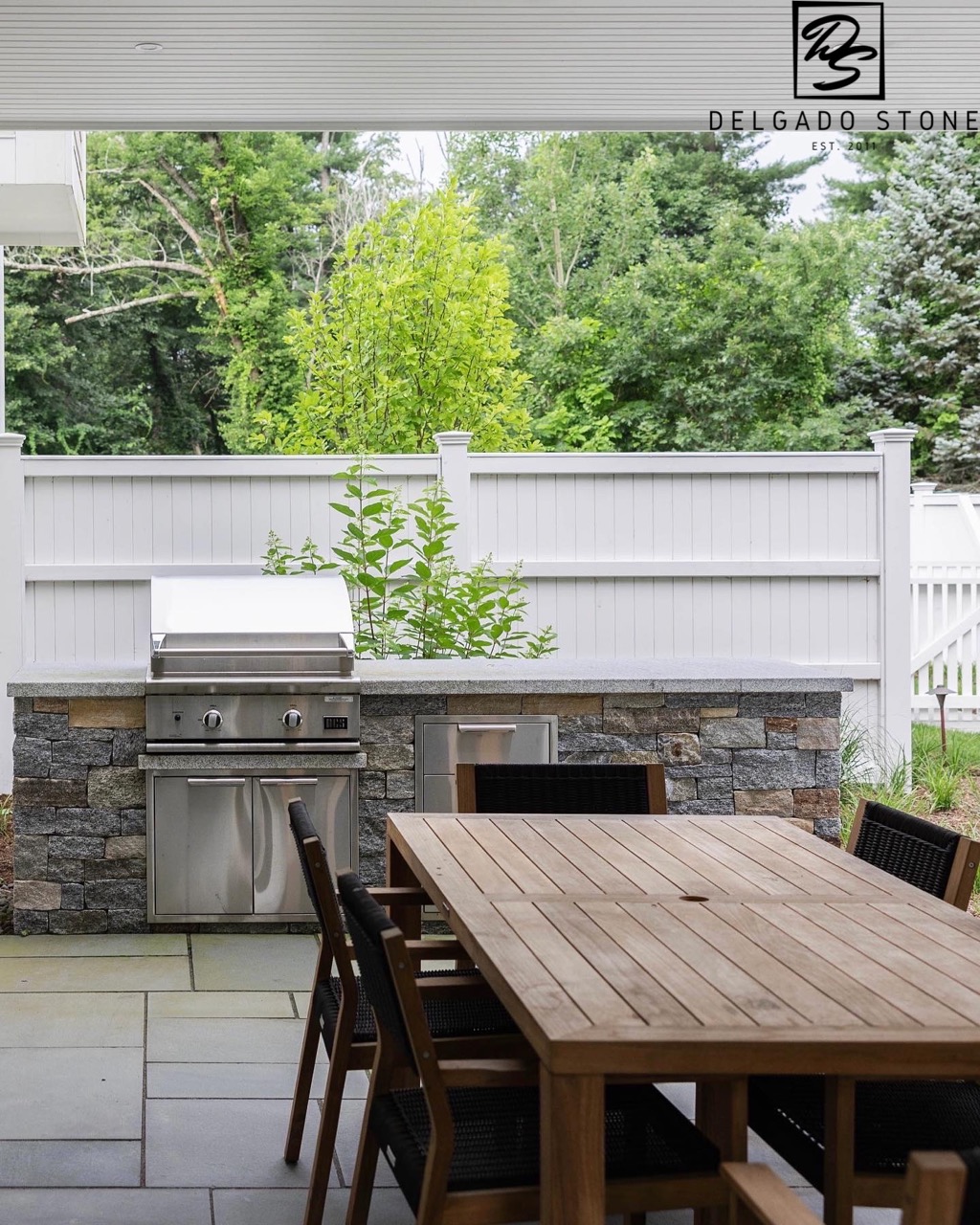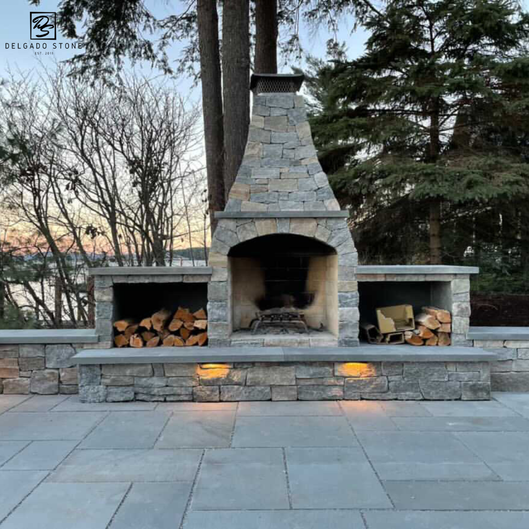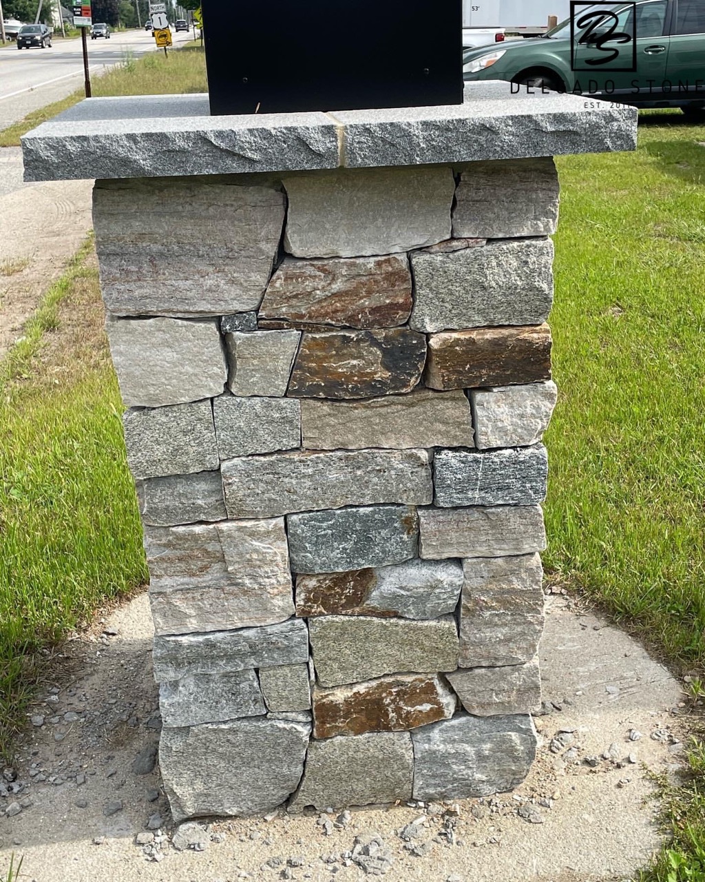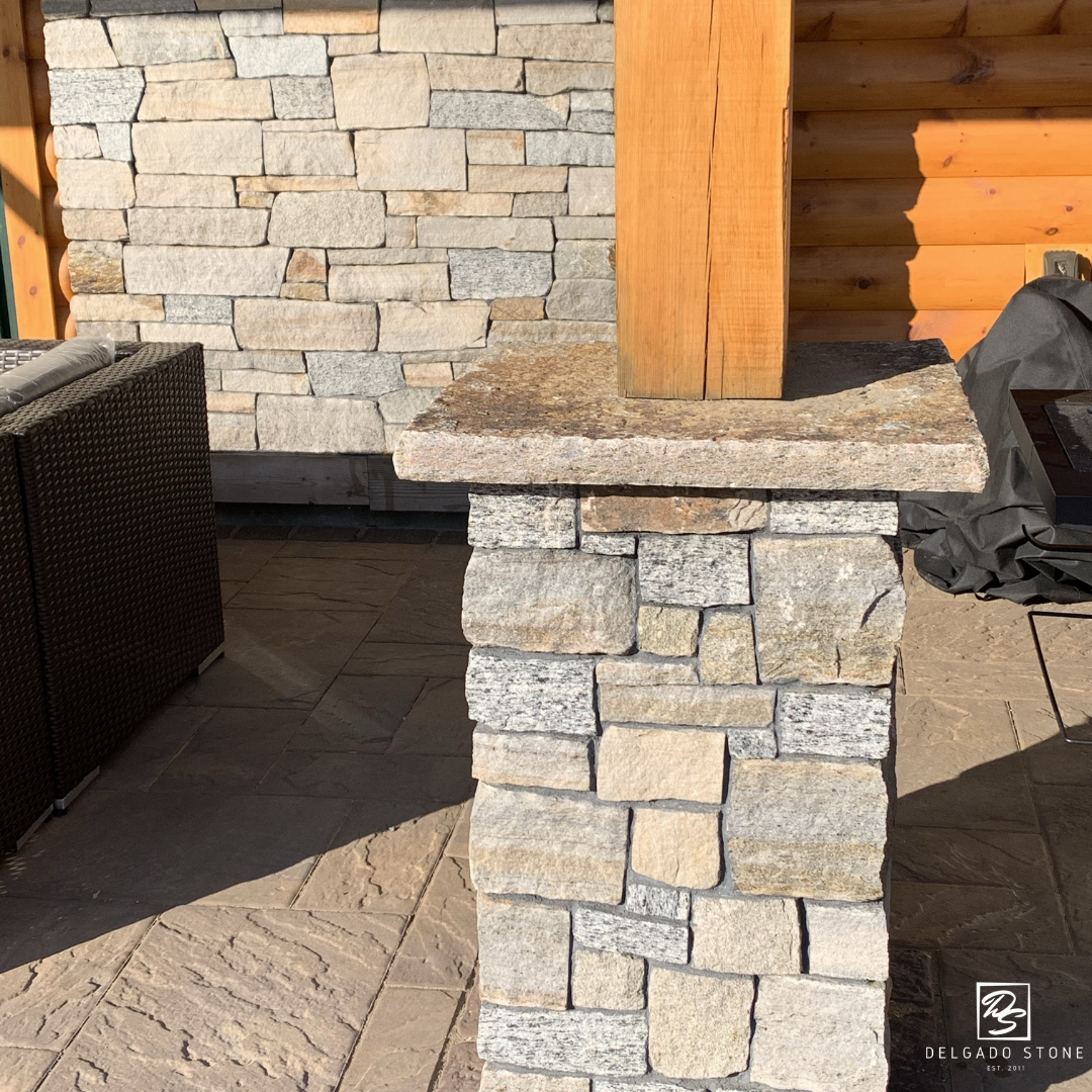 Delgado Stone Connecticut Blend Ashlar veneer features a refined, linear cut that highlights the signature mix of five stones quarried in Connecticut. Known for its blend of blues, greys, tans, browns, and creams, this collection captures the authentic color palette of New England. A favorite for Long Island masonry projects, Connecticut Blend Ashlar delivers both regional charm and timeless structure for facades, fireplaces, and architectural accents.