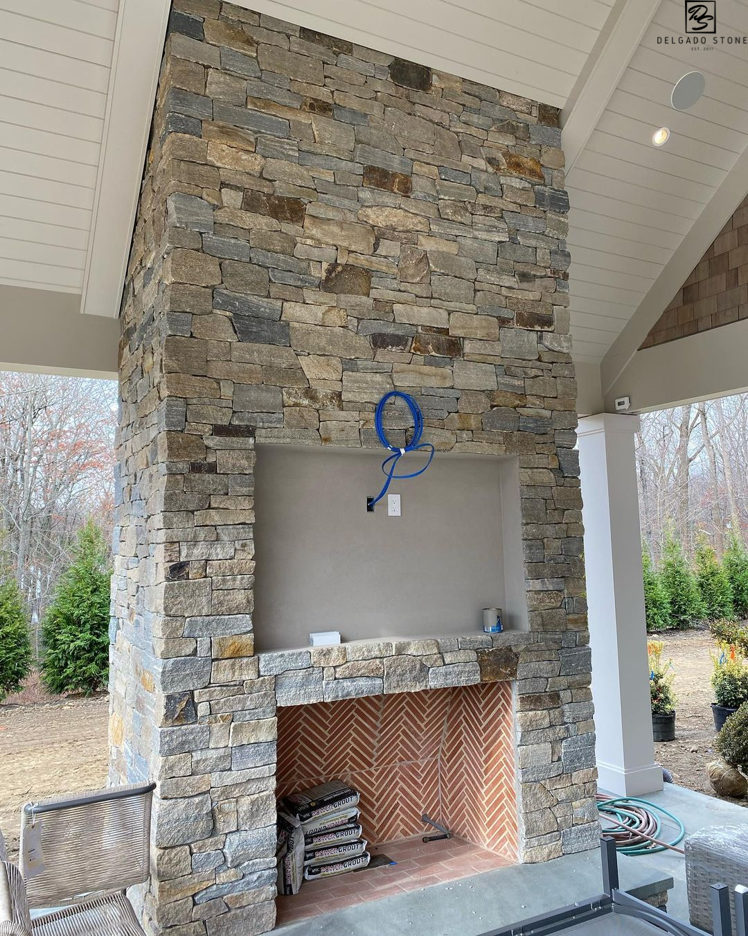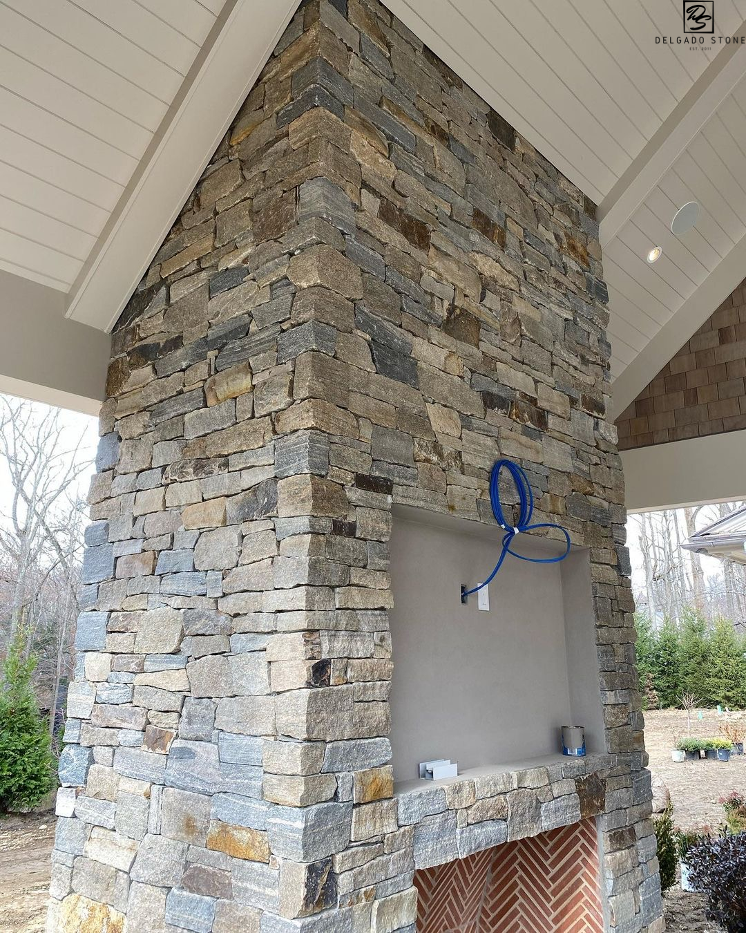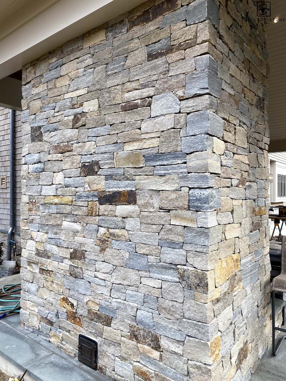 Delgado Stone Montauk Blend Ashlar veneer brings a curated mix of three popular New England quarried stones together in one striking masonry product. Named after the scenic Montauk shoreline, this blend features a refined ashlar pattern with a range of tones from dark and light grey to subtle tan and pink accents. Since its 2016 introduction, Montauk Blend has become a standout choice for Long Island projects looking to combine regional character with a clean, structured aesthetic.