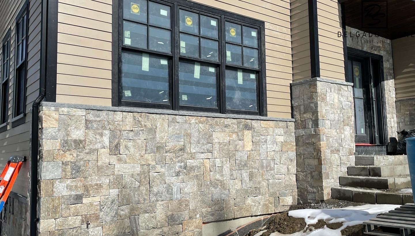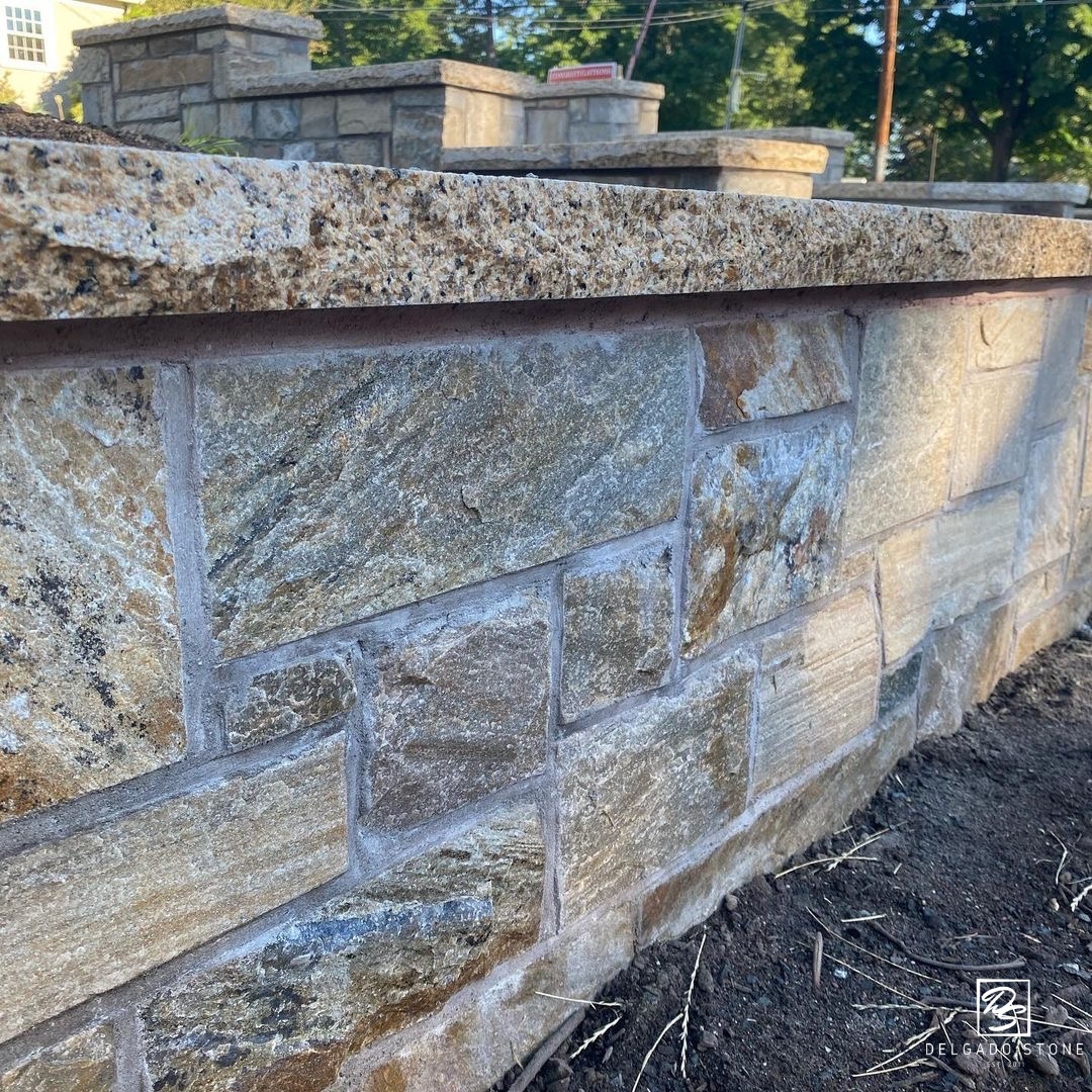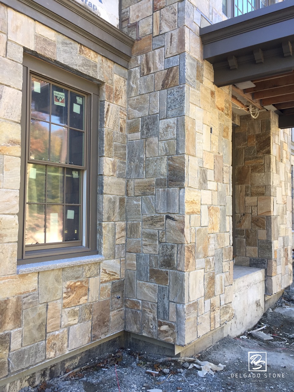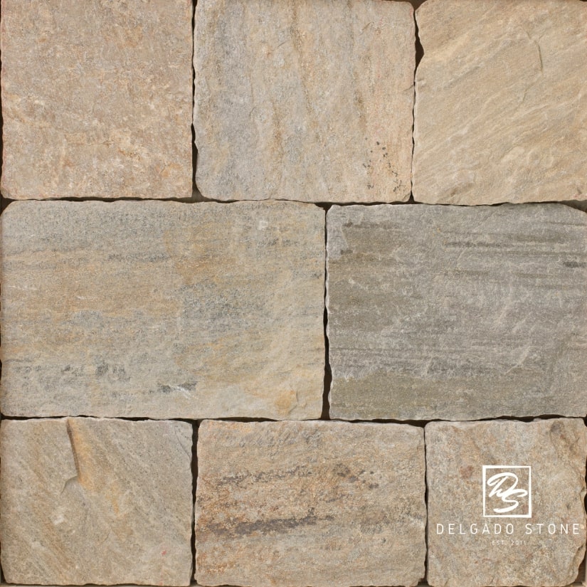 Delgado Stone Sterling Tan Square & Rectangle veneer is crafted from a rare New England quartzite prized for its natural beauty and versatility. With a medium texture and a square and rectangular cut, this natural stone masonry option delivers an organic look that works seamlessly in both traditional and modern designs. A popular choice throughout Long Island, the Sterling Tan Collection brings lasting character to facades, landscape architecture, and building features.