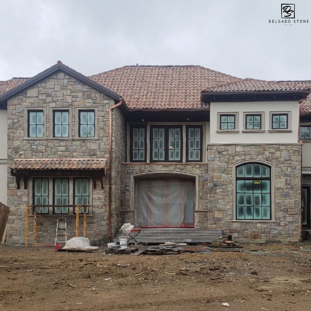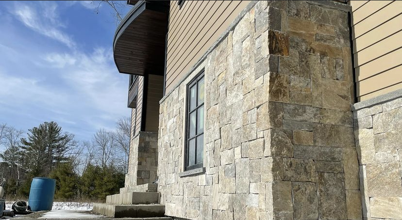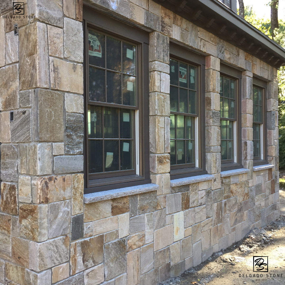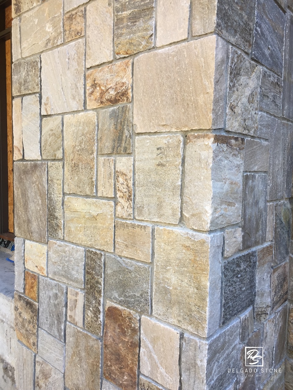 Delgado Stone Sterling Tan Square and Rectangle veneer blends geometric balance with the textured appeal of native quartzite, offering a structured layout that suits traditional and transitional masonry styles. A reliable choice for Long Island installations aiming for clean lines without sacrificing stone character.